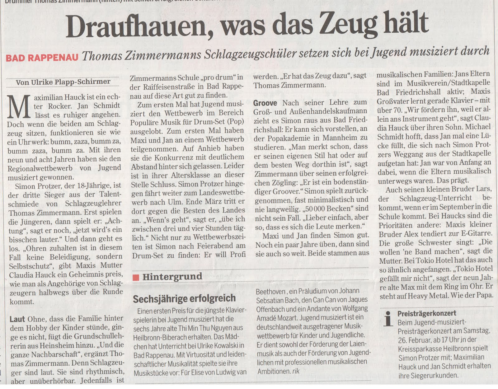 Jugend musiziert: 3 x 1. Preise f. pro-Drum!