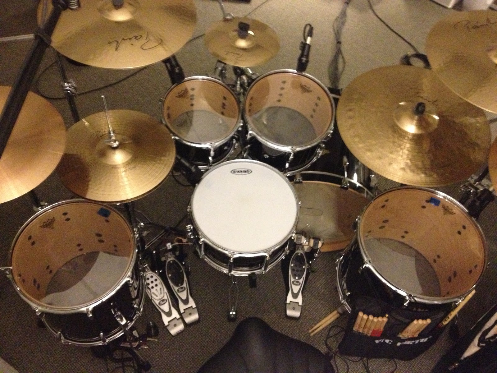 Dein Equipment? Auch wenn ich über die Jahre schon viel probiert habe, bin ich doch irgendwie immer wieder zu Pearl Drums, Paiste Becken, Vic Firth Sticks und Remo Fellen zurück gekommen, wohl aufgrund deren Sound, Qualität und Verarbeitung. Aber Gear ist ein bisschen wie die die unendliche Geschichte – so etwas wie das „ultimative Set“, „die ultimative Snare“ oder das „ultimative Ride“ gibt es wahrscheinlich nicht.